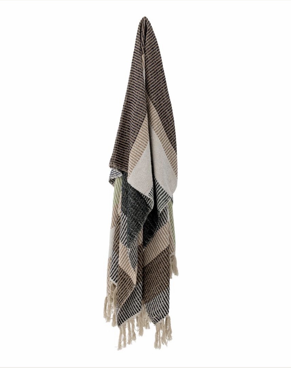 Plaiden fra Creative Collection er vævet i genbrugsbomuld med et fantastisk farvespil af brune, grønne og sorte striber! Plaiden har små frynser i hver ende. Lad plaiden tilføje hygge i hjemmet eller tag den med undenfor i de lange sommernætter.